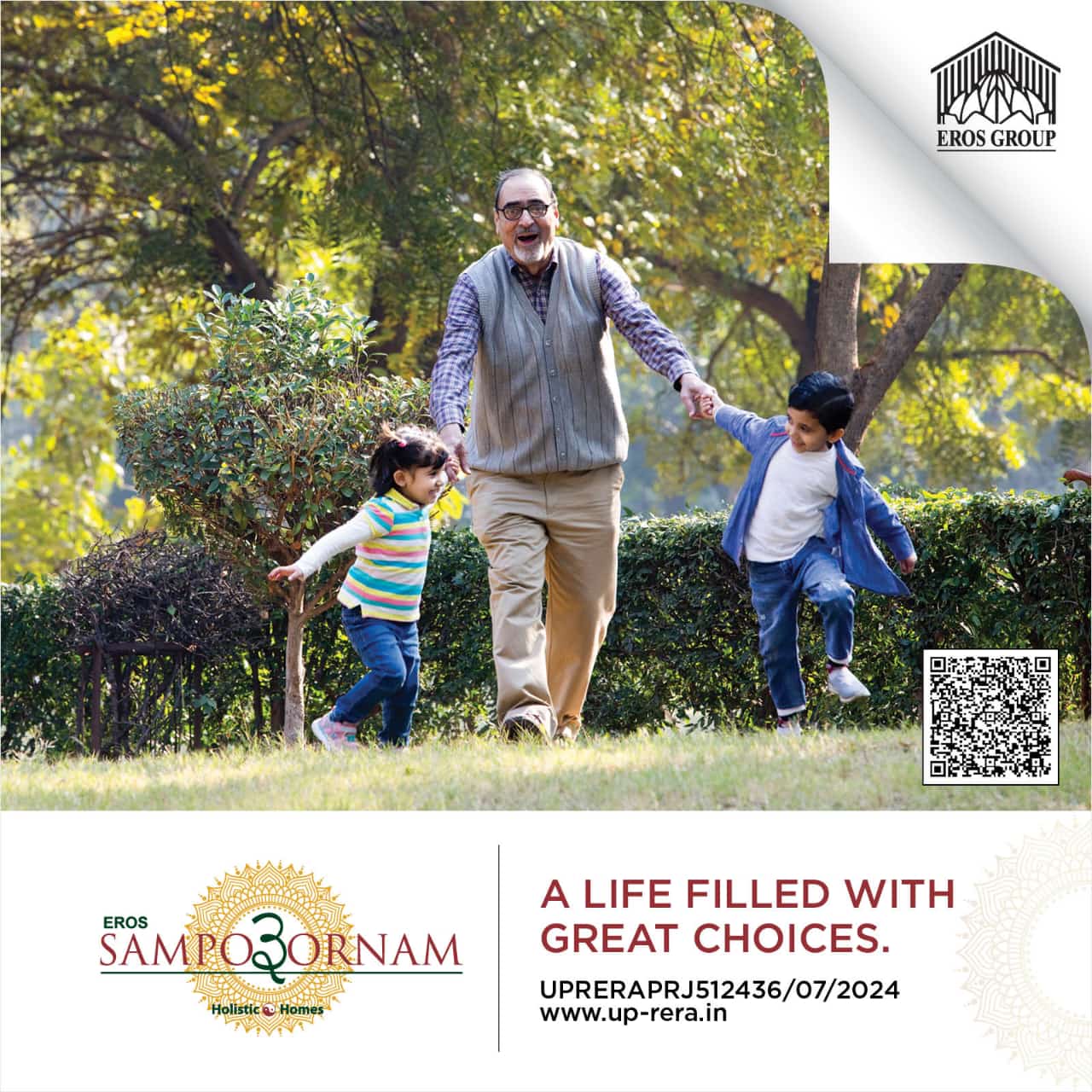 Welcome to Eros Sampoornam Phase 3 - After the grand achievement of EROS Sampoornam Phase 1 & Phase 2, The Eros Group has decided to newly launched phase 3 of Eros Sampoornam. This is the well developed society flats in Sector 2 Noida Extension. Which is perfect combination of nature and contemporary architecture. Loaded with smart amenities, this development is a premium residential project in Greater Noida West. The EROS GROUP has bring of Eros Sampoornam Phase 3, The EROS GROUP a name synomous with quality, timely delivery and creators of landmarks presents Sampoornam+. Sampoornam+ is the advanced level of holistic living with best comfort, max luxury and par convenience, for those who deserve a little extra